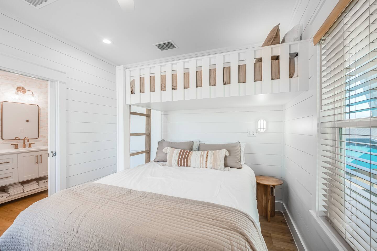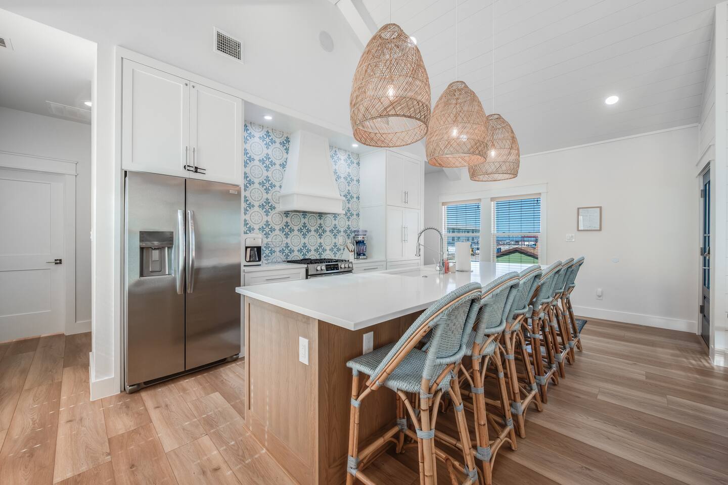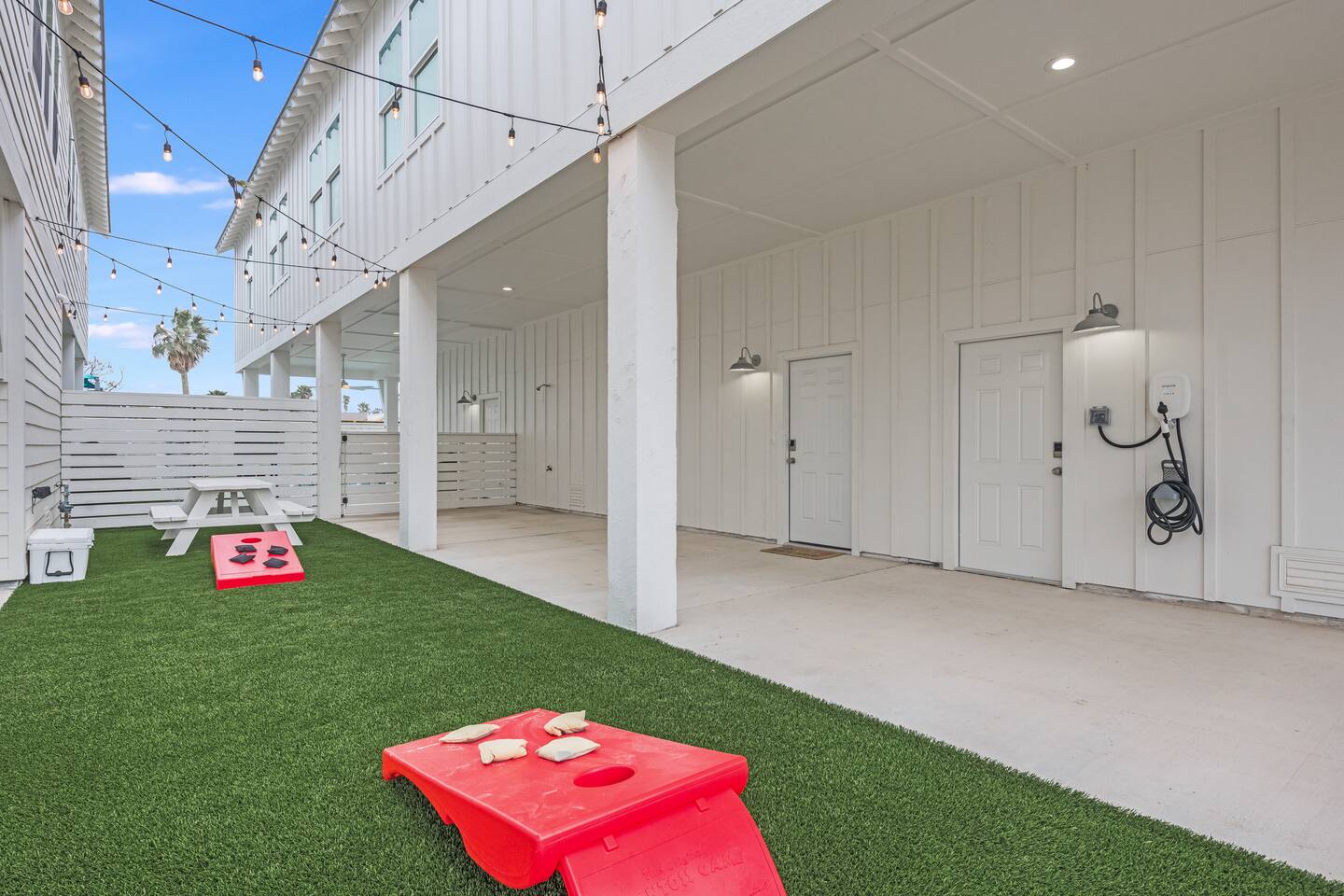 The White Lotus is the ULTIMATE Port A Beach House - 4BR/3BA, 2-story house (Finished Construction Early 2024) 1840+ sq ft (upstairs) and 750+sq ft (downstairs) enclosed game room + Pool Bar Space, accommodating 12 people. Top of the line furnishings include LoveSac, West Elm, CB2, Pottery Barn, Serena & Lily and more! This home offers a private heated pool (when needed at no additional cost) + both in/out of water seating (yes, built-in bar stools in the pool, benches and Ledge Lounger chairs!) + 6 - Seater Golf Cart, a Commercial Sonic Ice Machine (no need to purchase ice for the trips to the beach) + plethora of outdoor games (Axe Throwing, Outdoor Ping-Pong that can also serve as a dining table, Pool Basketball, Ring Toss, Cornhole & more!) and indoor arcade games like Hoop Fever, Pac-Man & Golden Tee for those overcast or rainy days! This stunning beach house is centrally located - 1min by golf cart to the local grocery store, 2 blocks to all the favorite restaurant & bar / coffee shop spots in Port Aransas and only a 4min Golf Cart ride to the beach down beach street or Avenue G! Pulling into the driveway, you will see both covered and non-covered parking. There is also easily accessible EV Charger (free charging of course!) in case you bring the Tesla or any other electric vehicle! At the front of the home there is a common area between our neighbors –home which also can be rented out in case your party needs to accommodate more then 12 people (8 Adults Max). Here you can enjoy outdoor movie night on the lawn or games like cornhole under the string lights! As you make your way to the back of this property, you will find an outdoor shower is available to rinse off before hopping in the secluded private pool! This pool will easily accommodate all 12 guests (8 Adults Max) if needed, can heat up to temps as a hot tub on cold days (at no extra charge), and in/out of water games either under the patio, on the turfed area around the pool to keep everyone having a good time. Feel free to leave the speaker at home, as you will find Sonos built in speakers throughout the house that you can easily connect to once connected on the Wi-Fi. If listening to music isn’t your thing, no worries as you will find an outdoor TV that can easily be viewed from in-side the pool – or another TV while sitting at the pool bar under the shade - perfect way to watch any sporting event! Once inside the enclosed game room/pool bar area downstairs, you will find a commercial ice machine – and not any ice but SONIC ice + Golden Tee for you Golf Lovers & Hoop Fever for the hoopsters (& of course all set in FREE Play Mode) Up the decorative staircase you will find the front door leading to an absolutely stunning living and kitchen area. The interior is not only immaculate, it is gorgeous with shiplap ceilings, quartz counters, stained white oak island, stainless appliances, and furnishings that complete this stunner like no other! The kitchen has an oversized island which is also additional dining space (the kids tend to always sit here) – 6 bar stools. The kitchen comes stocked with EVERYTHING you will need for the perfect beach vacation - pots, pans, dishes, utensils, glasses (both glass and plastic for by the pool), cups, mugs and wine glasses. Also included is a microwave, dishwasher, toaster, blender, and k-cup pod coffee maker for hot/ice coffee + drip coffee maker. Just behind the island situated in between the kitchen living area is a grand live oak dining table that comfortable sits another 8 people. This table is also perfect for accomplishing one of the many puzzles provided in the home. Open to the kitchen and dining areas is the spacious living room with a large Lovesac sectional sofa and 2-peson LoveSac bean bag to curl up and watch a large Samsung Frame flat-screen TV mounted over the fireplace. On each side of the fireplace in the living room, you will find entrances to each king bedroom suite with each bedroom having porch access that have views over the marina! Looking to take a nap after the beach before hitting the night scene, no worries used the custom blackout shades to darken the rooms at any time of the day! Each master bedroom also has their own dedicated bathroom/shower. Plenty of space for all your toiletries makeup etc. as each bathroom has a separate makeup vanity + single sink vanity. No need to pack body wash, shampoos & conditioners as we provide large pump style containers that will last you the length of your vacation! Both porch access + blackout shades On the opposite end of the house you will find the additonal 2 bedrooms. all with custom built bunks and shiplap walls from floor to ceiling! There is a lockable pocket door between these 2 bedrooms allowing you to separate the 2 bedrooms or make them in to one giant bunk room for kids! One of the rooms include 2 Twin XL bunk beds making 4 beds + a trundle bed under one of the bunks making 5 individual sleeping beds, in the other addiotnal bedroom you will find a queen size bed with a twin XL lofted bunk over. This bedroom is perfect for a third set of adults squeezing in or the bigger kids in the group of kids. Note* All bedrooms are on the same floor in case you have little ones in the middle of the night needing to find their parents in the king bedroom suites! A beautiful guest bathroom is shared between these bedrooms and offers a tub in case you have babies staying. Port Aransas, a gem on the Texas Gulf Coast, offers the perfect blend of sun, sand, and relaxation. With its pristine beaches, charming small-town vibe, and a wide range of outdoor activities, it's an ideal vacation spot for groups. Enjoy fishing, water sports, or simply lounging on the sandy shores. Don't miss the Port Aransas Nature Preserve for birdwatching. This coastal haven promises unforgettable memories for your group getaway. Local Attractions: Mustang Island Beach, Port Aransas Nature Preserve, Dolphin Tours, Texas SandFest, Fishing Charters, P