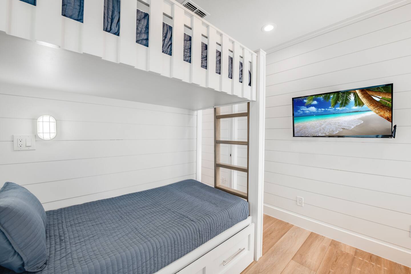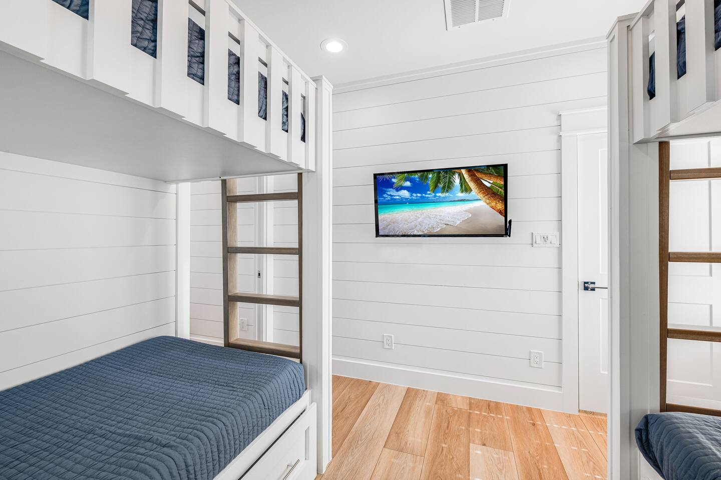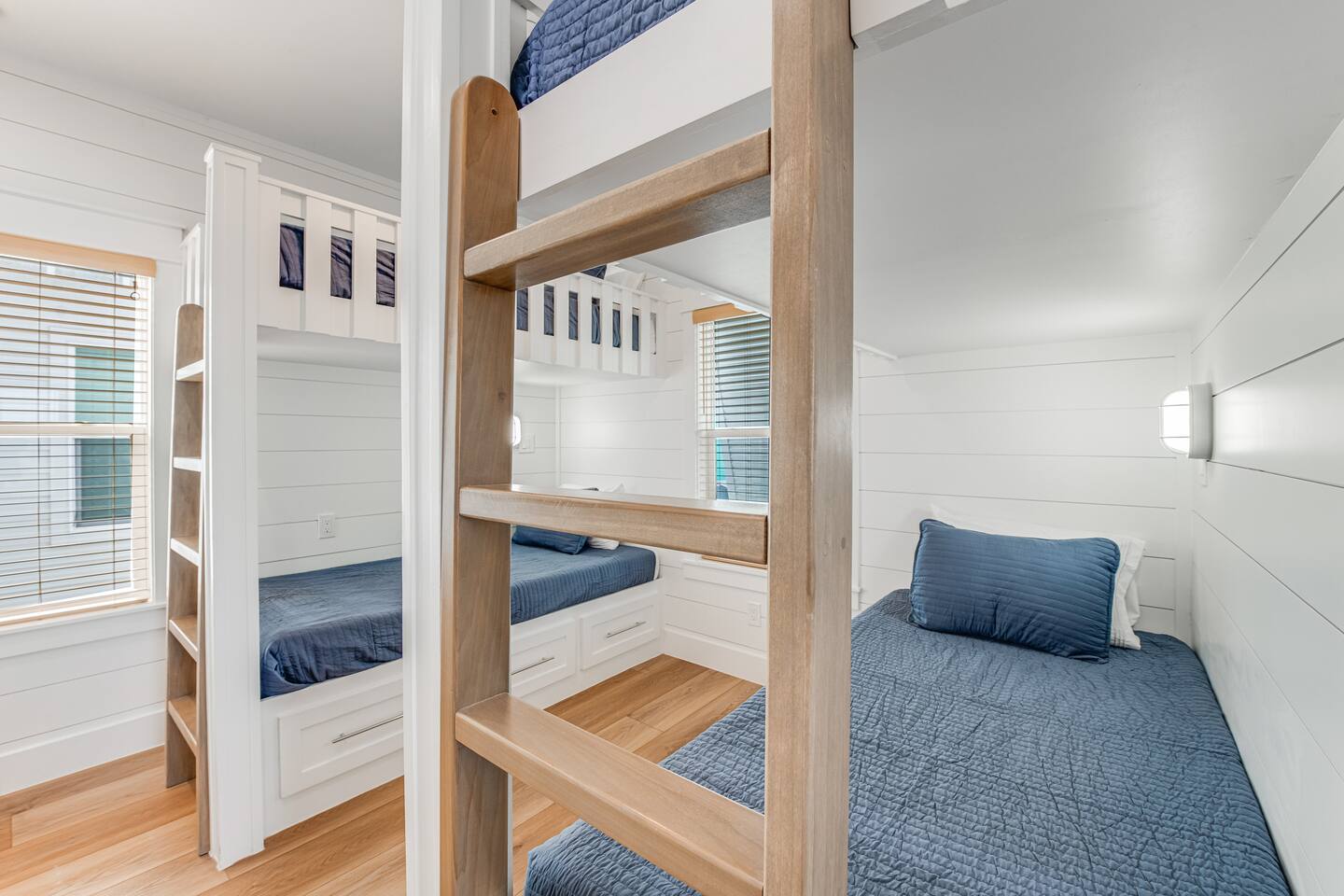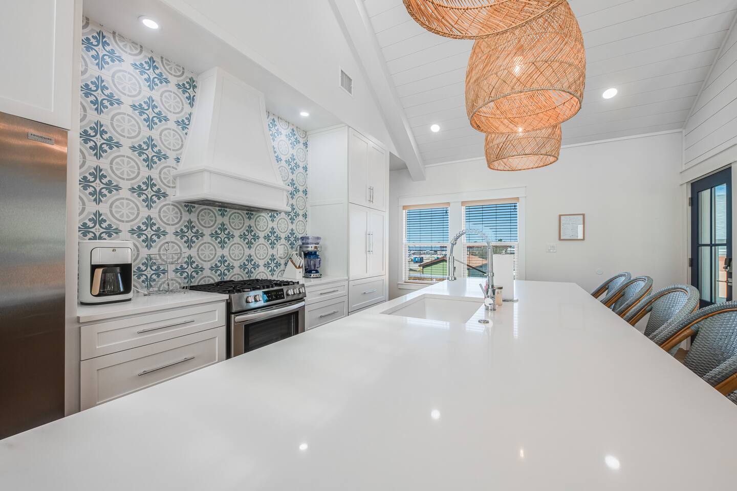 The White Lotus is the ULTIMATE Port A Beach House - 4BR/3BA, 2-story house (Finished Construction Early 2024) 1840+ sq ft (upstairs) and 750+sq ft (downstairs) enclosed game room + Pool Bar Space, accommodating 12 people. Top of the line furnishings include LoveSac, West Elm, CB2, Pottery Barn, Serena & Lily and more! This home offers a private heated pool (when needed at no additional cost) + both in/out of water seating (yes, built-in bar stools in the pool, benches and Ledge Lounger chairs!) + 6 - Seater Golf Cart, a Commercial Sonic Ice Machine (no need to purchase ice for the trips to the beach) + plethora of outdoor games (Axe Throwing, Outdoor Ping-Pong that can also serve as a dining table, Pool Basketball, Ring Toss, Cornhole & more!) and indoor arcade games like Hoop Fever, Pac-Man & Golden Tee for those overcast or rainy days! This stunning beach house is centrally located - 1min by golf cart to the local grocery store, 2 blocks to all the favorite restaurant & bar / coffee shop spots in Port Aransas and only a 4min Golf Cart ride to the beach down beach street or Avenue G! Pulling into the driveway, you will see both covered and non-covered parking. There is also easily accessible EV Charger (free charging of course!) in case you bring the Tesla or any other electric vehicle! At the front of the home there is a common area between our neighbors –home which also can be rented out in case your party needs to accommodate more then 12 people (8 Adults Max). Here you can enjoy outdoor movie night on the lawn or games like cornhole under the string lights! As you make your way to the back of this property, you will find an outdoor shower is available to rinse off before hopping in the secluded private pool! This pool will easily accommodate all 12 guests (8 Adults Max) if needed, can heat up to temps as a hot tub on cold days (at no extra charge), and in/out of water games either under the patio, on the turfed area around the pool to keep everyone having a good time. Feel free to leave the speaker at home, as you will find Sonos built in speakers throughout the house that you can easily connect to once connected on the Wi-Fi. If listening to music isn’t your thing, no worries as you will find an outdoor TV that can easily be viewed from in-side the pool – or another TV while sitting at the pool bar under the shade - perfect way to watch any sporting event! Once inside the enclosed game room/pool bar area downstairs, you will find a commercial ice machine – and not any ice but SONIC ice + Golden Tee for you Golf Lovers & Hoop Fever for the hoopsters (& of course all set in FREE Play Mode) Up the decorative staircase you will find the front door leading to an absolutely stunning living and kitchen area. The interior is not only immaculate, it is gorgeous with shiplap ceilings, quartz counters, stained white oak island, stainless appliances, and furnishings that complete this stunner like no other! The kitchen has an oversized island which is also additional dining space (the kids tend to always sit here) – 6 bar stools. The kitchen comes stocked with EVERYTHING you will need for the perfect beach vacation - pots, pans, dishes, utensils, glasses (both glass and plastic for by the pool), cups, mugs and wine glasses. Also included is a microwave, dishwasher, toaster, blender, and k-cup pod coffee maker for hot/ice coffee + drip coffee maker. Just behind the island situated in between the kitchen living area is a grand live oak dining table that comfortable sits another 8 people. This table is also perfect for accomplishing one of the many puzzles provided in the home. Open to the kitchen and dining areas is the spacious living room with a large Lovesac sectional sofa and 2-peson LoveSac bean bag to curl up and watch a large Samsung Frame flat-screen TV mounted over the fireplace. On each side of the fireplace in the living room, you will find entrances to each king bedroom suite with each bedroom having porch access that have views over the marina! Looking to take a nap after the beach before hitting the night scene, no worries used the custom blackout shades to darken the rooms at any time of the day! Each master bedroom also has their own dedicated bathroom/shower. Plenty of space for all your toiletries makeup etc. as each bathroom has a separate makeup vanity + single sink vanity. No need to pack body wash, shampoos & conditioners as we provide large pump style containers that will last you the length of your vacation! Both porch access + blackout shades On the opposite end of the house you will find the additonal 2 bedrooms. all with custom built bunks and shiplap walls from floor to ceiling! There is a lockable pocket door between these 2 bedrooms allowing you to separate the 2 bedrooms or make them in to one giant bunk room for kids! One of the rooms include 2 Twin XL bunk beds making 4 beds + a trundle bed under one of the bunks making 5 individual sleeping beds, in the other addiotnal bedroom you will find a queen size bed with a twin XL lofted bunk over. This bedroom is perfect for a third set of adults squeezing in or the bigger kids in the group of kids. Note* All bedrooms are on the same floor in case you have little ones in the middle of the night needing to find their parents in the king bedroom suites! A beautiful guest bathroom is shared between these bedrooms and offers a tub in case you have babies staying. Port Aransas, a gem on the Texas Gulf Coast, offers the perfect blend of sun, sand, and relaxation. With its pristine beaches, charming small-town vibe, and a wide range of outdoor activities, it's an ideal vacation spot for groups. Enjoy fishing, water sports, or simply lounging on the sandy shores. Don't miss the Port Aransas Nature Preserve for birdwatching. This coastal haven promises unforgettable memories for your group getaway. Local Attractions: Mustang Island Beach, Port Aransas Nature Preserve, Dolphin Tours, Texas SandFest, Fishing Charters, P