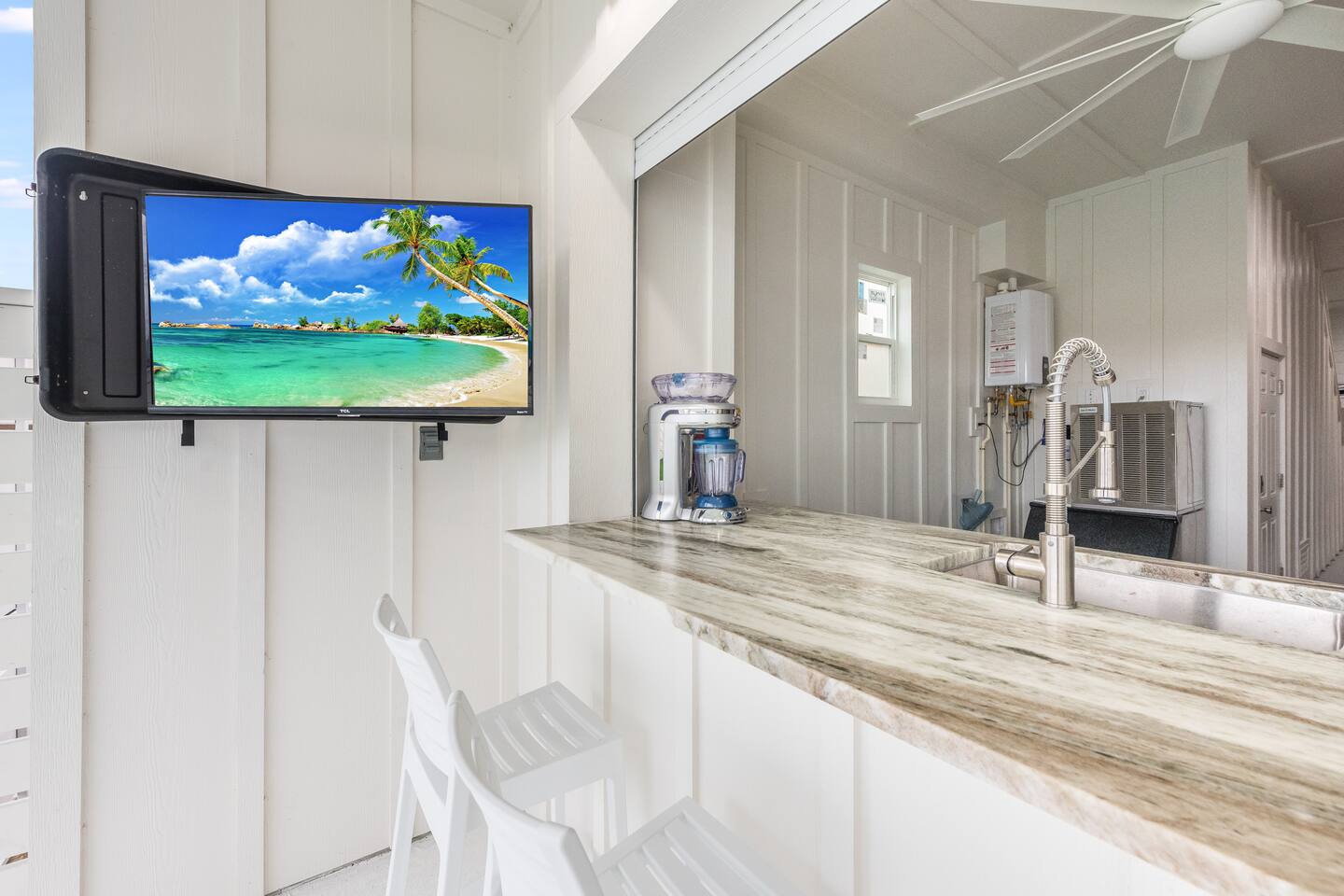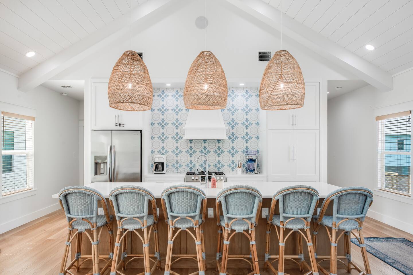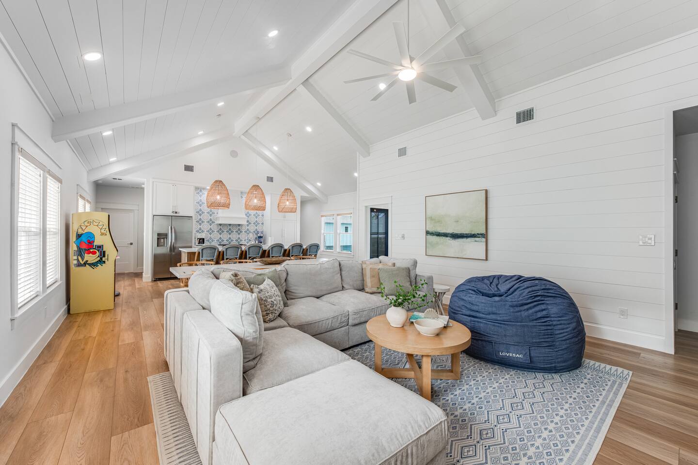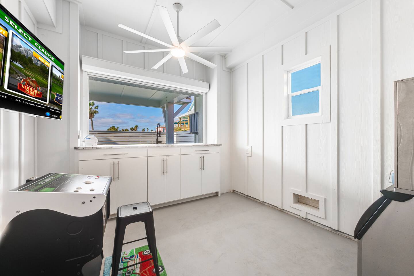 The ULTIMATE Beach House in Port A (Built in 2023) with a game room + pool bar! Top-Notch furnishings. Private Pool w/ barstools in pool (free heated pool), outdoor games, arcade machines (Golden Tee, Hoop Fever, Pacman), Commercial Sonic Ice Machine + 6 Seater Golf Cart included! Centrally located in town, minutes to beach, restaurants, and grocery store. EV charger, outdoor shower, built-in Sonos speakers throughout + TVs everywhere! Sleeps 12 (8 Adults Max) Custom bunk-room for the kids